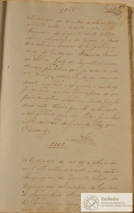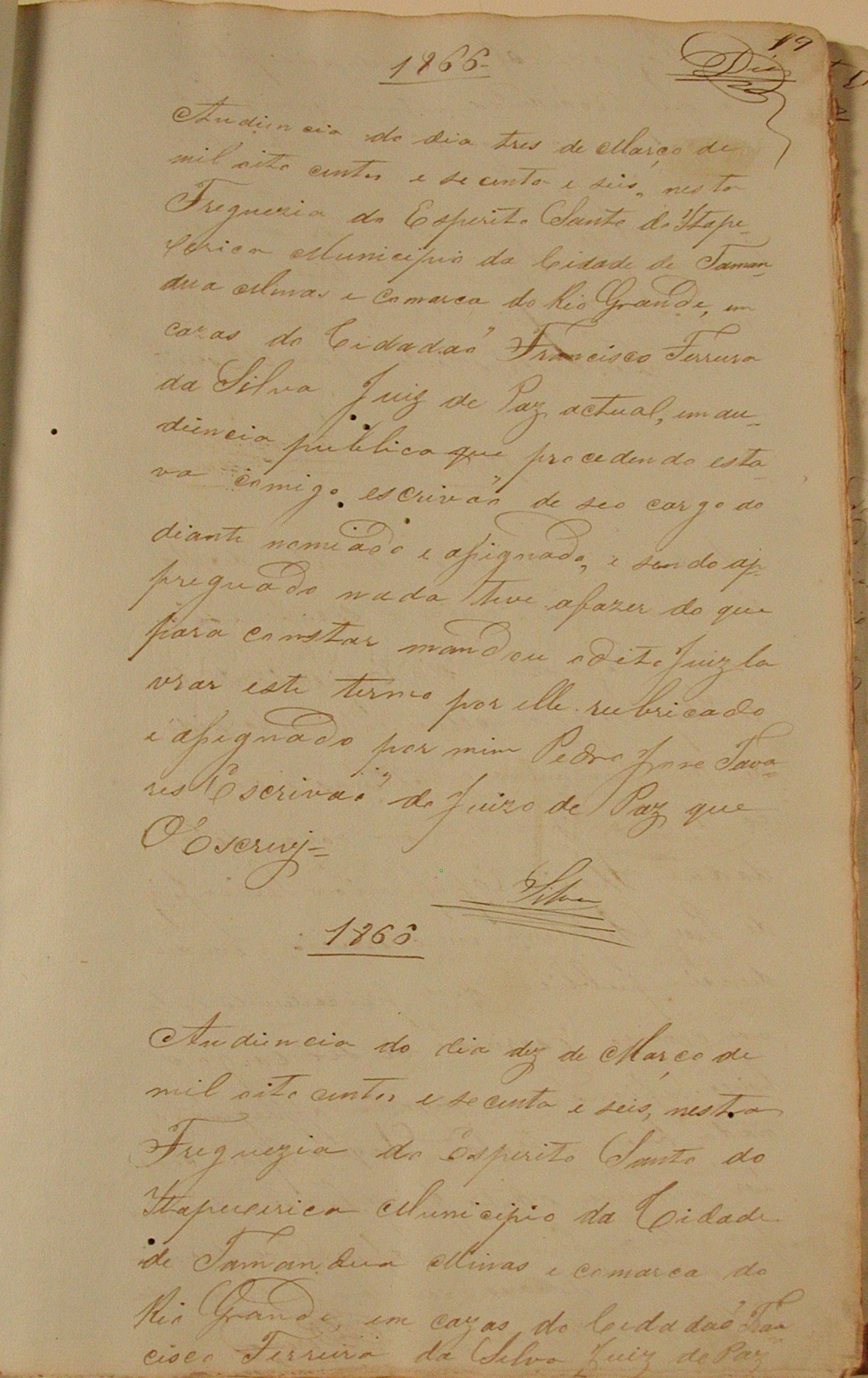 Escrivão - Arraial - Espirito Santo do Itapecerica - Livro de Protocolo e Audiência do Juiz de Paz - Villa do Tamanduá