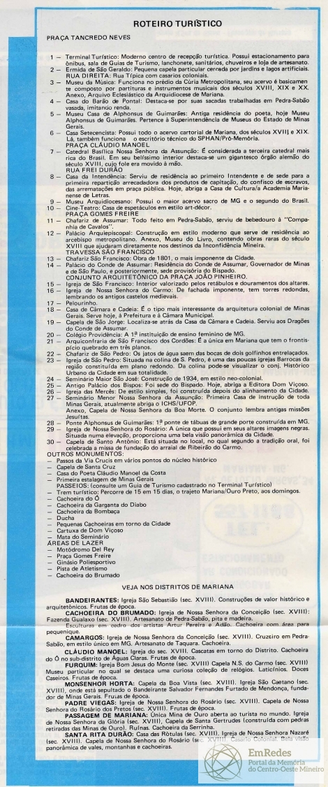 FOLDER : MARIANA - PALCOS E ATOS - CENÁRIOS E CENAS. PROGRAMAÇÃO - EXPOSIÇÃO ITINERANTE