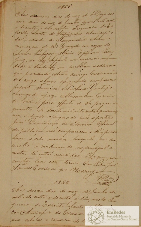LOCAL: FREGUESIA DO ESPIRITO SANTO DO ITAPECERICA, MUNICIPIO DA CIDADE DE TAMANDUÁ MINAS E COMARCA DO RIO GRANDE.