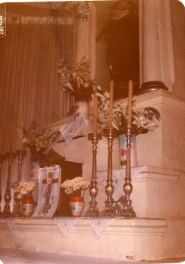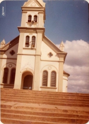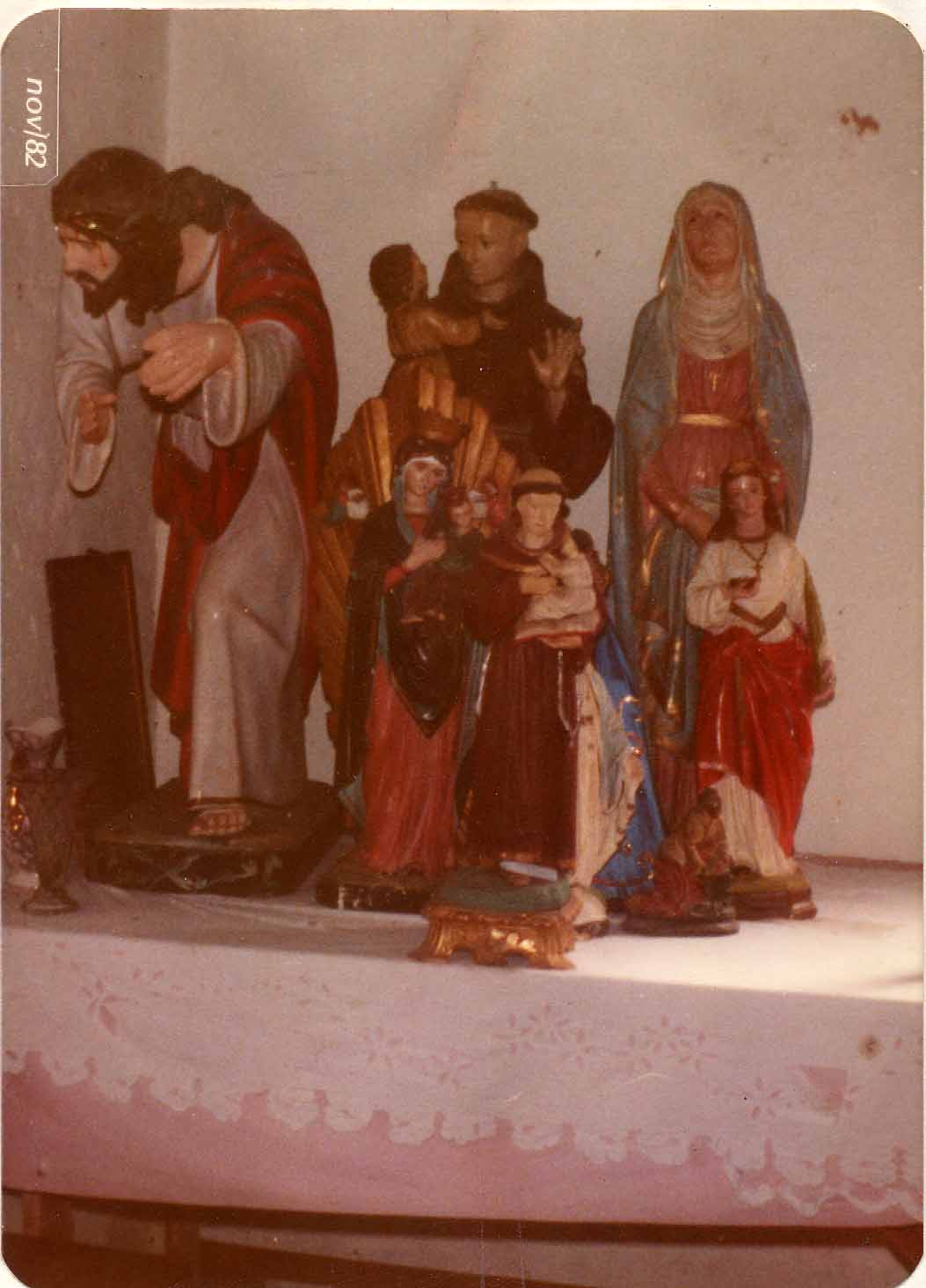 FOTOS DE IGREJAS DO DISTRITO DE SANTO ANTONIO DOS CAMPOS: IGREJA DO PADROEIRO SANTO ANTONIO, CONSTRUÍDA EM 1925 - VISTA LATERAL DA IGREJA - CASA PAROQUIAL - TEXTO E VISTA INTERNA COM AS IMAGENS DOS SANTOS.