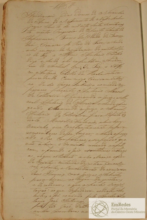 COMPARECEU O AUTOR ANTONIO MANOEL DE OLIVEIRA, CHAMANDO A JUÍZO O RÉU MANOEL ANTONIO DE OLIVEIRA, PARA EFEITO DO DITO RÉU ABRIR UM CAMINHO QUE CONSTATEMENTE PASSAVA OS MORADORES DESTE LUGAR, MAS QUE RÉU ALEGAVA NÃO EXISTIR, E POR FIM SE CONCIALIARAM.