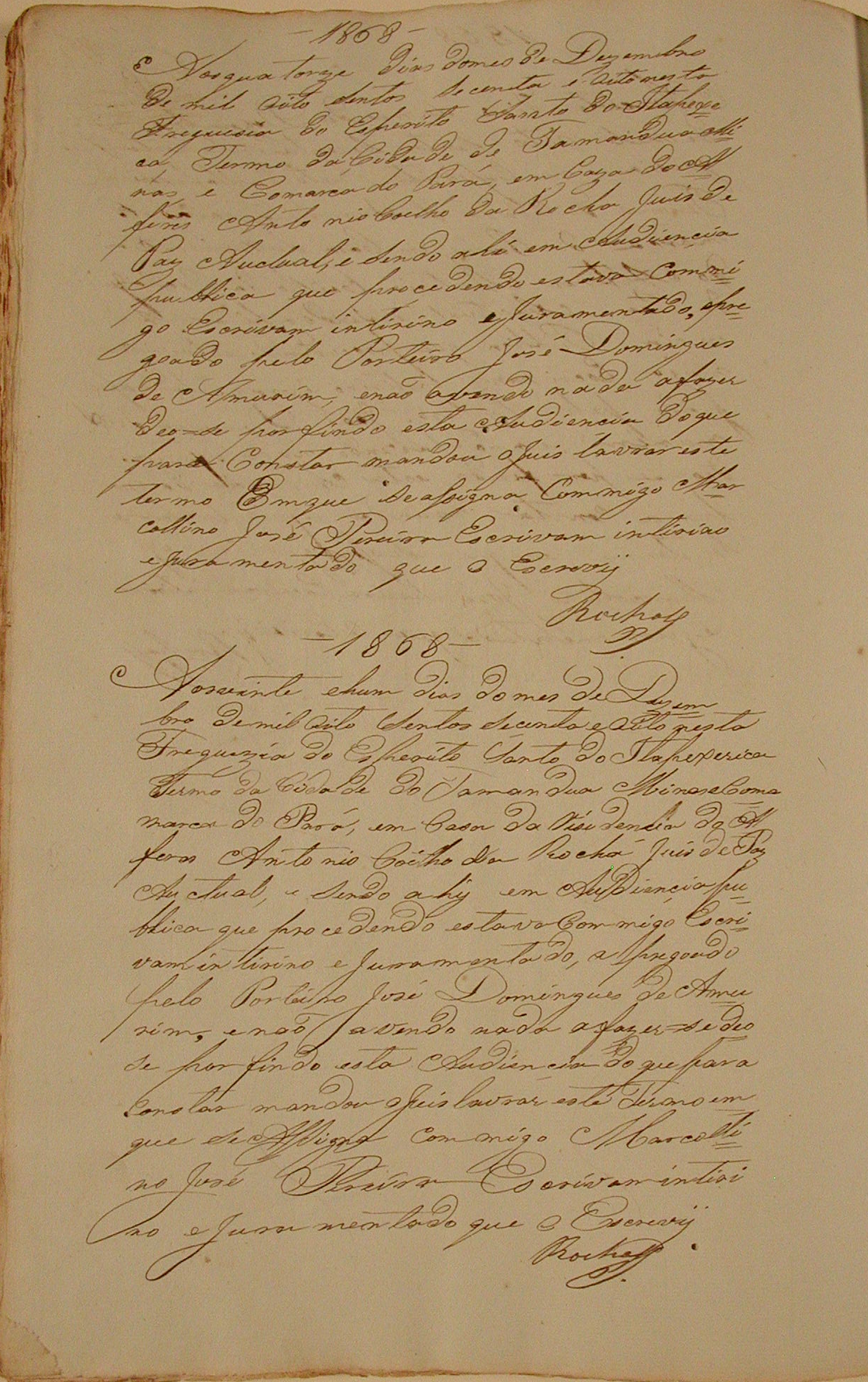 Escrivão - Arraial - Espirito Santo do Itapecerica - Livro de Protocolo e Audiência do Juiz de Paz - Villa do Tamanduá