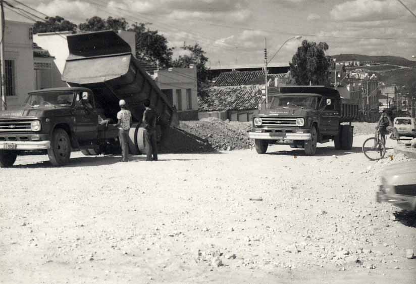 FOTOS DE OBRAS DE CALÇAMENTO E ALARGAMENTO DE RUAS DE DVINÓPOLIS - MAQUINÁRIO E OPERÁRIOS - SEM DATA ESTABELECIDA.