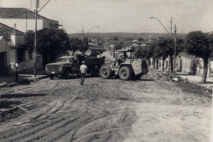 Fotos - Pavimentação - Calçamento - Alargamento - Maquinário - Operários - Cidadãos - Vista Aérea - Obras - Estação Ferroviária - Rua - Santuário