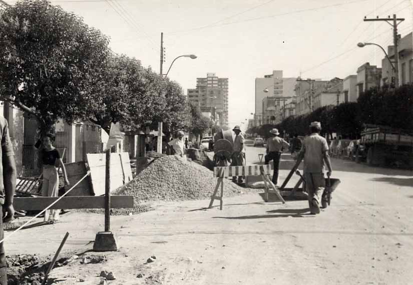 Fotos - Pavimentação - Calçamento - Alargamento - Maquinário - Operários - Cidadãos - Vista Aérea - Obras - Estação Ferroviária - Rua - Santuário