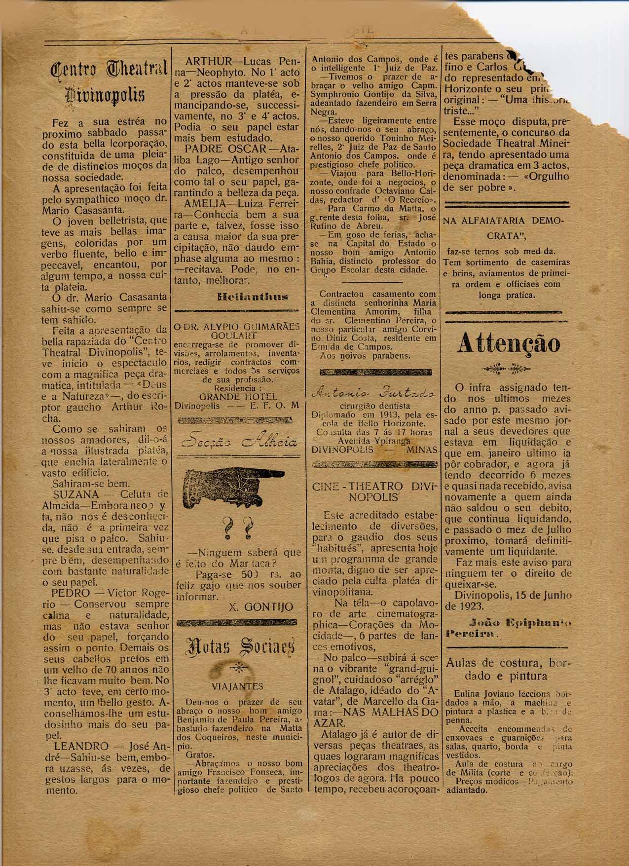 OBS: ESTA EDIÇÃO ENCONTRA-SE DANIFICADA EM SUA PARTE SUPERIOR, PORÉM AFETA POUCO AS NOTÍCIAS PUBLICADAS.
