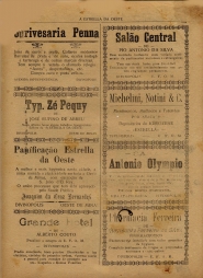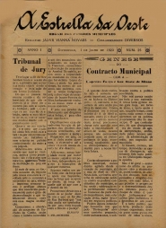 JORNAL: A ESTRELLA DA OESTE - NOTÍCIAS, REPORTAGENS, INFORMAÇÕES E PROPAGANDAS. PRIMEIRA PÁGINA: "TRIBUNAL DO JURY(SIC)" - "CONTRACTO(SIC) MUNICIPAL - COM A EMPREZA(SIC) FORÇA E LUZ OETE DE MINAS".