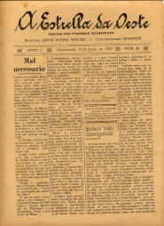 JORNAL: A ESTRELLA DA OESTE - NOTÍCIAS, REPORTAGENS, INFORMAÇÕES E PROPAGANDAS. PRIMEIRA PÁGINA: "MAL NECESSÁRIO" - "HISTÓRIA TRISTE".