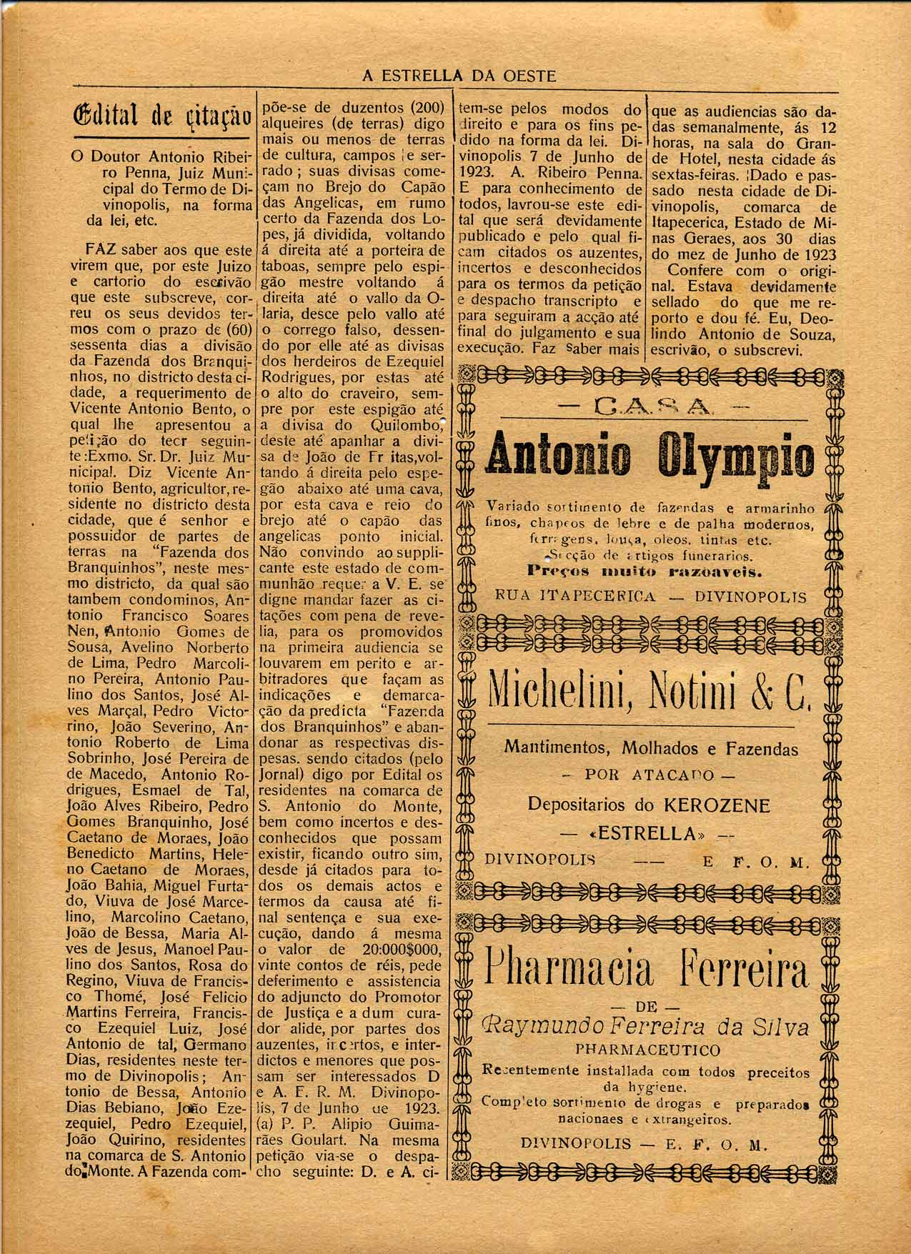 JORNAL: A ESTRELLA DA OESTE - NOTÍCIAS, REPORTAGENS, INFORMAÇÕES E PROPAGANDAS. PRIMEIRA PÁGINA: "MAL NECESSÁRIO" - "HISTÓRIA TRISTE".