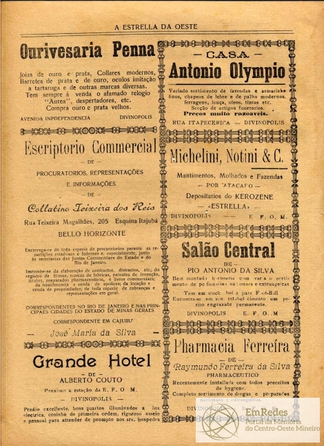 JORNAL: A ESTRELLA DA OESTE - NOTÍCIAS, REPORTAGENS, INFORMAÇÕES E PROPAGANDAS. PRIMEIRA PÁGINA: "MULHER DE POETA" - "D. ANTONIO DOS SANTOS CABRASL" - "EXPEDIENTE".