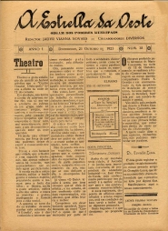 JORNAL: A ESTRELLA DA OESTE - NOTÍCIAS, REPORTAGENS, INFORMAÇÕES E PROPAGANDAS. PRIMEIRA PÁGINA: "THEATRO" - "NOSSA INDUSTRIA(SIC)".