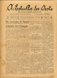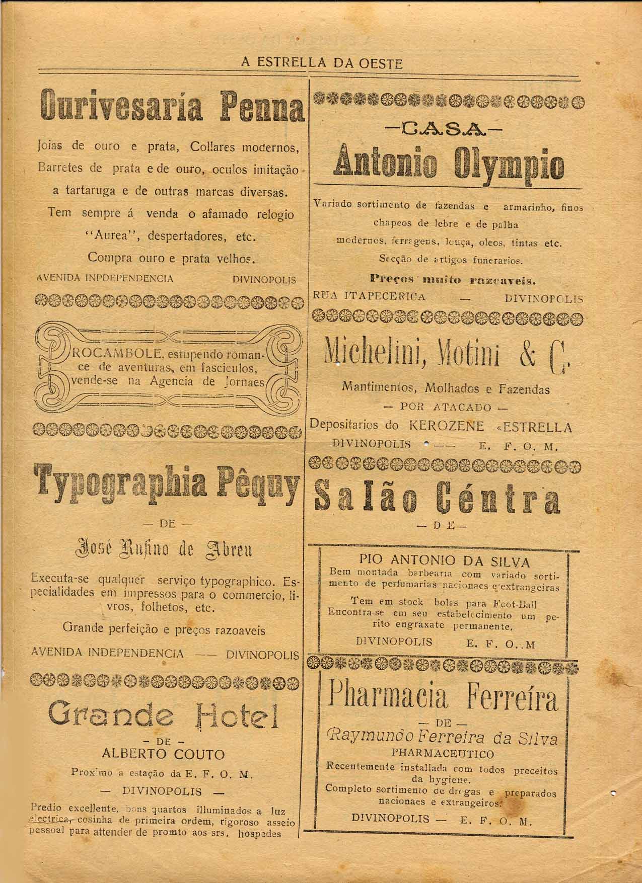 JORNAL: A ESTRELLA DA OESTE - NOTÍCIAS, REPORTAGENS, INFORMAÇÕES E PROPAGANDAS. PRIMEIRA PÁGINA: "DO VEREADOR DE SANTO ANTONIO DOS CAMPOS" - "SINGER SEWING MACHINE COMPANY".