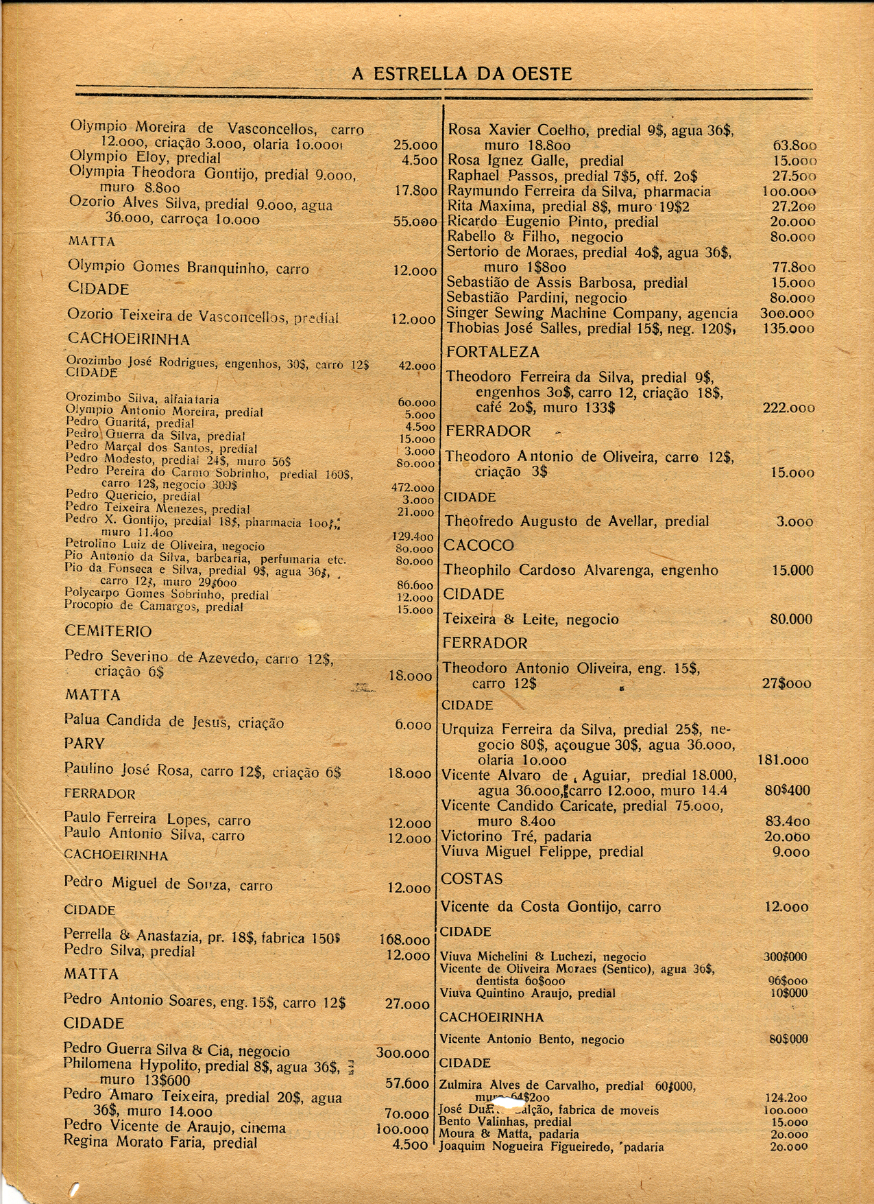 JORNAL: A ESTRELLA DA OESTE - NOTÍCIAS, REPORTAGENS, INFORMAÇÕES E PROPAGANDAS. PRIMEIRA PÁGINA: "CAMARA(SIC) MUNICIPAL DE DIVINOPOLIS(SIC) - LANÇAMENTO PARA O EXERCÍCIO DE 1924 (CONTINUAÇÃO)".