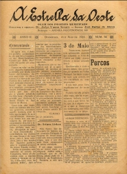 JORNAL: A ESTRELLA DA OESTE - NOTÍCIAS, REPORTAGENS, INFORMAÇÕES E PROPAGANDAS. PRIMEIRA PÁGINA: "COMMENTANDO(SIC)" - "3 DE MAIO" - "PORCOS".