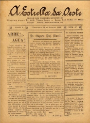 JORNAL: A ESTRELLA DA OESTE - NOTÍCIAS, REPORTAGENS, INFORMAÇÕES E PROPAGANDAS. PRIMEIRA PÁGINA: "ARRE!...AGUA!" - "DR. OLEGÁRIO DIAS MACIEL".