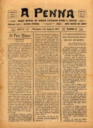 JORNAL "A PENNA" - NOTÍCIAS, REPORTAGENS, INFORMAÇÕES, ARTIGOS GERAIS E PROPAGANDAS DIVERSAS. PRIMEIRA PÁGINA: "AO POVO MINEIRO" - ARTIGO ASSINADO POR ANTONIO CARLOS RIBEIRO DE ANDRADA.