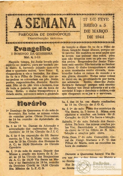 A SEMANA - JORNAL DE DISTRIBUIÇÃO INTERNA DA PARÓQUIA DE SANTO ANTÔNIO