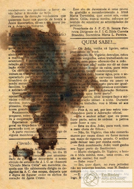 NA EDITORIA "CIRCULO OPERÁRIO": [PARTE ENCONTRA-SE DANIFICADA]