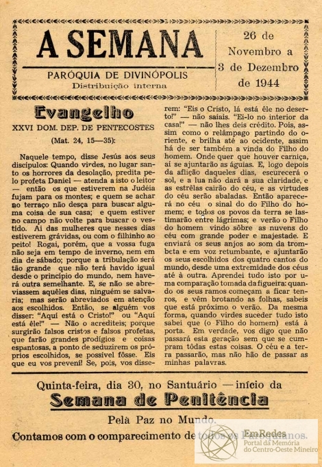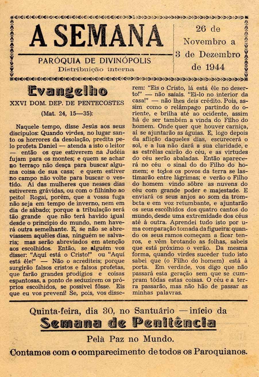 Jornal - A Semana - Informações - Avisos - Artigos - Evangelhos - Comunismo - Socialistas - Comunistas - Frei Orlando - Forças Expedicionárias