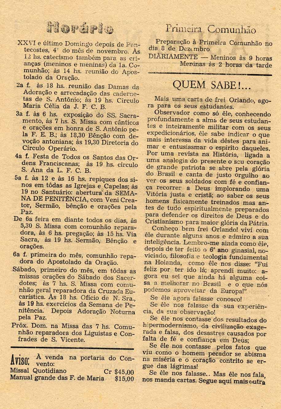 Jornal - A Semana - Informações - Avisos - Artigos - Evangelhos - Comunismo - Socialistas - Comunistas - Frei Orlando - Forças Expedicionárias
