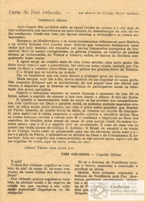 Jornal - A Semana - Informações - Avisos - Artigos - Evangelhos - Comunismo - Socialistas - Comunistas - Frei Orlando - Forças Expedicionárias