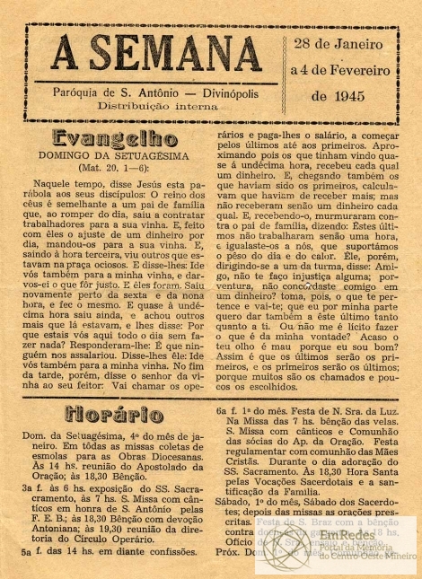 A SEMANA - JORNAL DE DISTRIBUIÇÃO INTERNA DA PARÓQUIA DE SANTO ANTÔNIO
