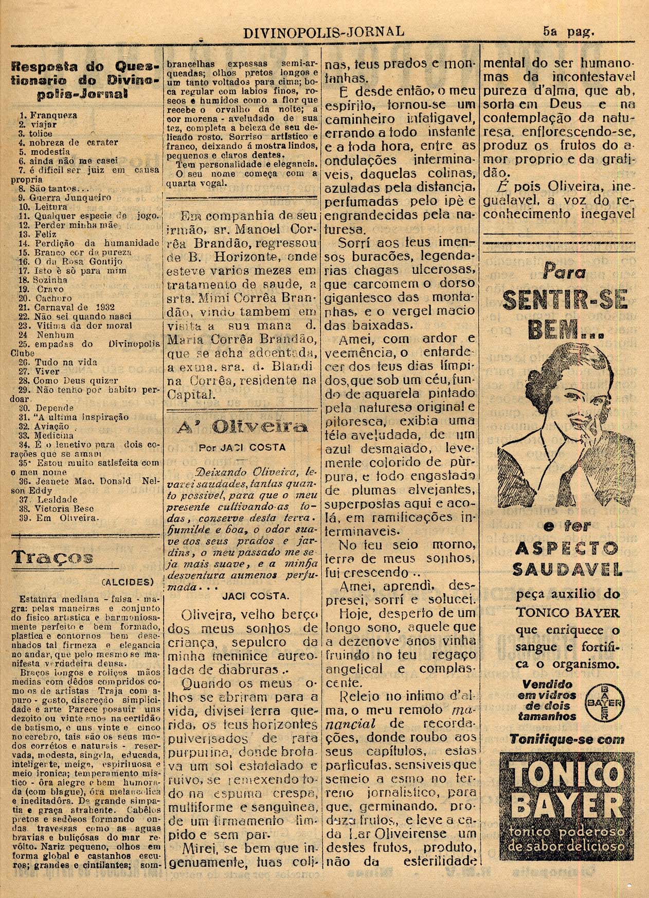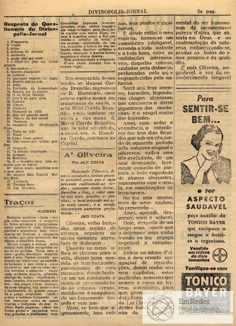 DIVINÓPOLIS JORNAL - NOTÍCIAS, REPORTAGENS E INFORMAÇÕES DIVERSAS, PROPAGANDAS. PRIMEIRA PÁGINA: "CONVOCAÇÃO DE PREFEITOS" - "POEMAS SEM VALORES".