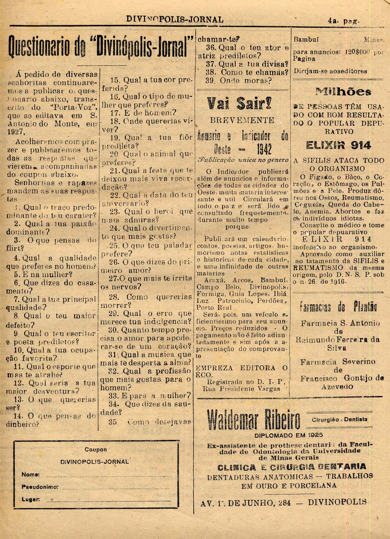 DIVINÓPOLIS JORNAL - NOTÍCIAS, REPORTAGENS E INFORMAÇÕES DIVERSAS, PROPAGANDAS. PRIMEIRA PÁGINA: "15 DE NOVEMBRO"