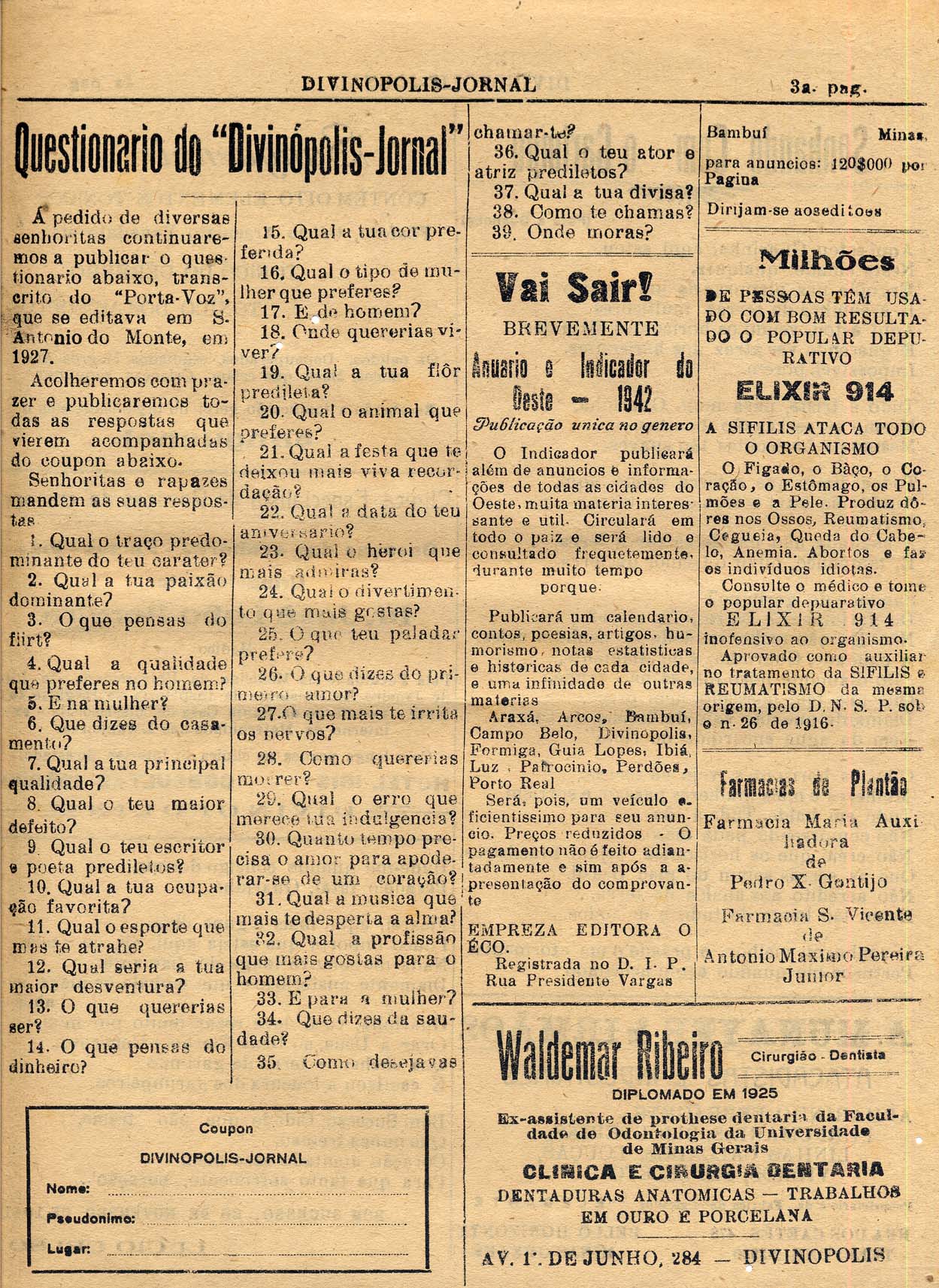DIVINÓPOLIS JORNAL - NOTÍCIAS, REPORTAGENS E INFORMAÇÕES DIVERSAS, PROPAGANDAS. PRIMEIRA PÁGINA: "AOS SÓCIOS DO T.G. 218" E "BABA DE MOÇA".