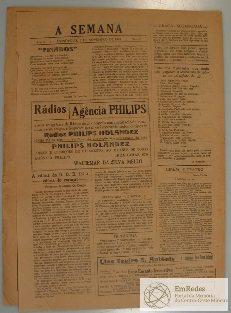Quarta página do Jornal A Semana, ano II, número 65, Divinópolis, 02 de Outubro de 1947.