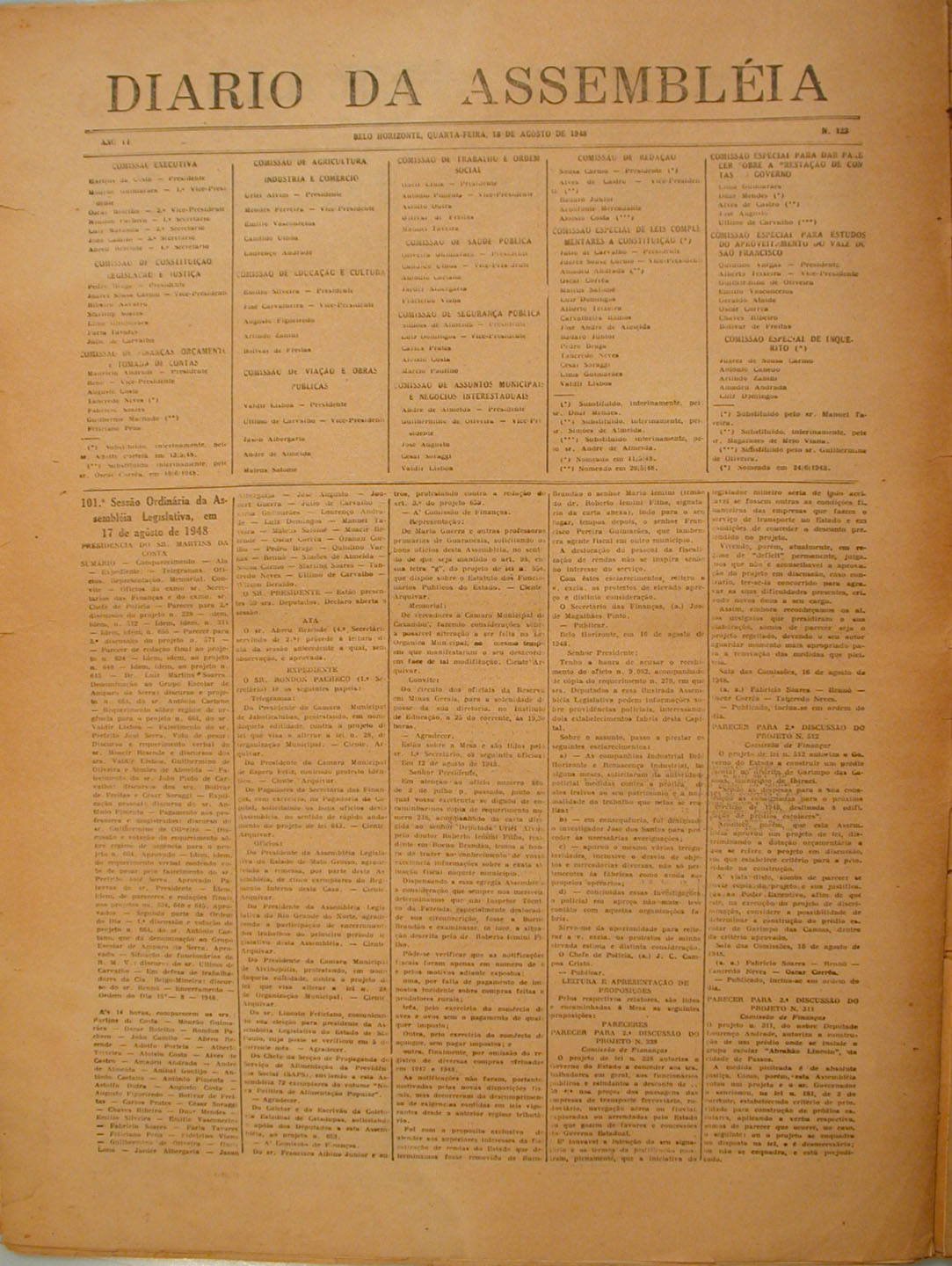 Décima página do Jornal Minas Geraes, ano 6, número 184. Belo Horizonte, 25/08/1944.