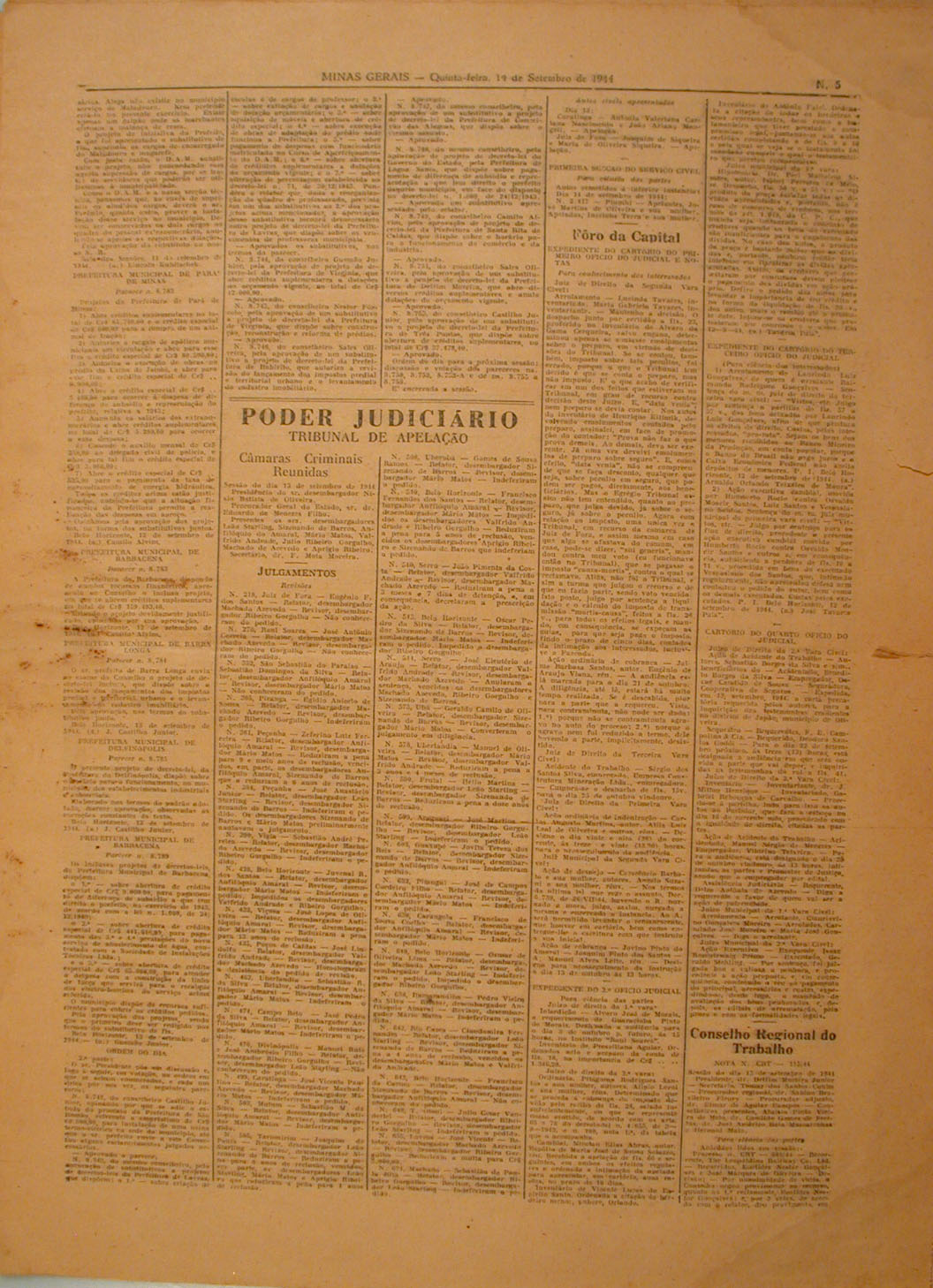 Quinta página do Jornal Minas Geraes, número 215. Belo Horizonte, 14/09/1944.
