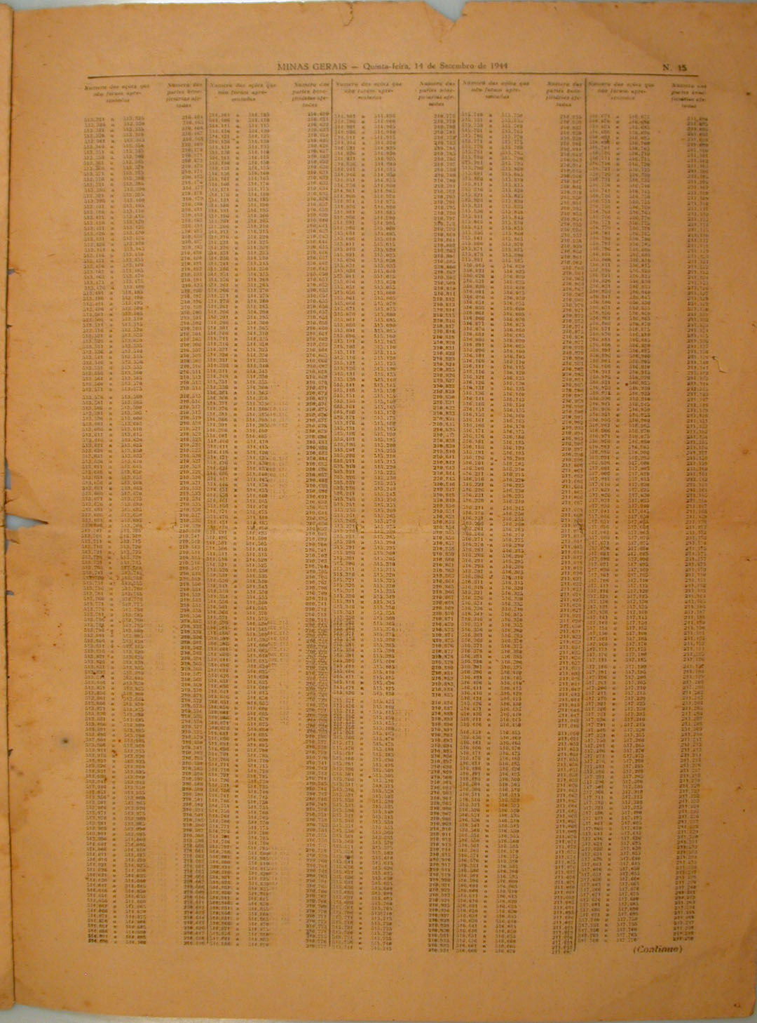 Décima quinta página do Jornal Minas Geraes, ano 6, número 215. Belo Horizonte, 14/09/1944.