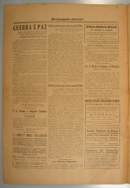 Divinópolis Jornal, contém reportagens, notícias, informações, propagandas e artigos diversos. manchete em destaque. * Primeira página: "sobre o ante-projeto da lei eleitoral". * Segunda página: "guerra e paz".