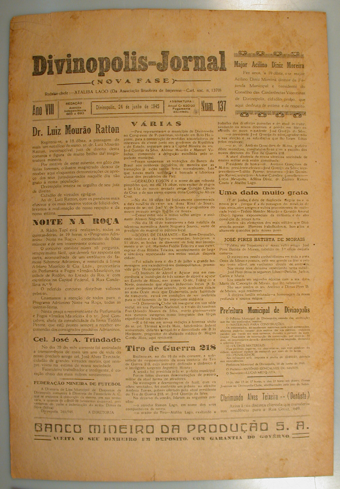 Quarta página do Divinópolis Jornal, ano 8, número 137. Divinópolis, 24/06/1945.