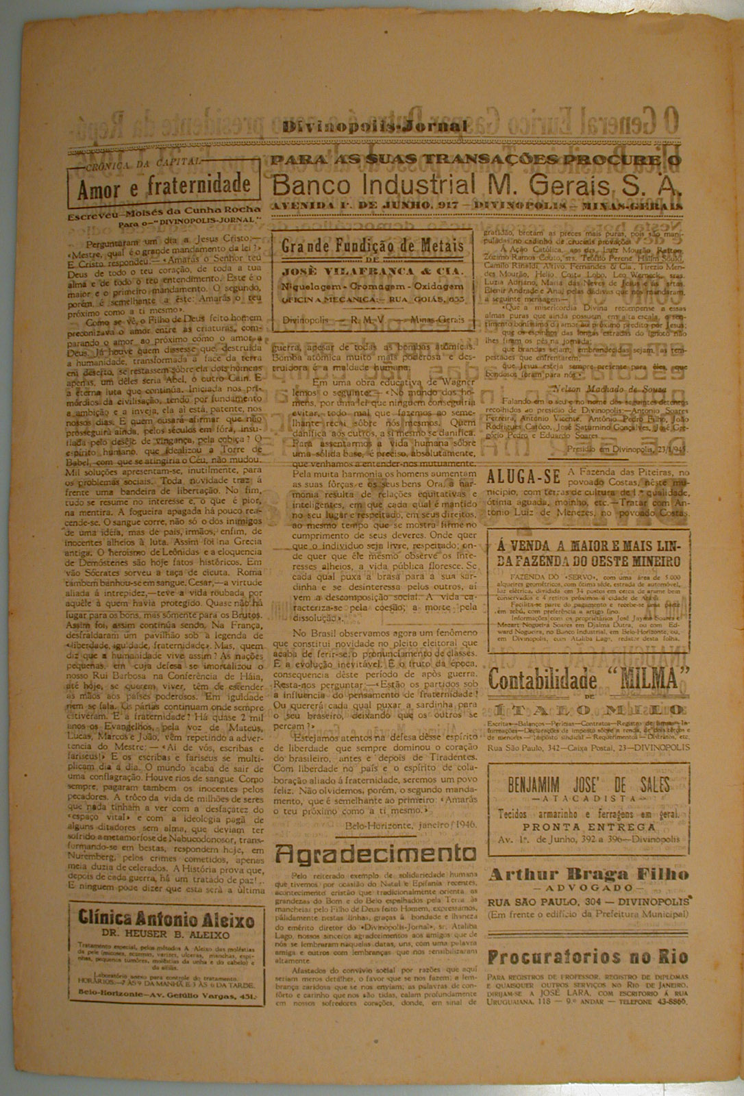* Segunda página: crônica da capital: amor e fraternidade" * Terceira página: propagandas diversas