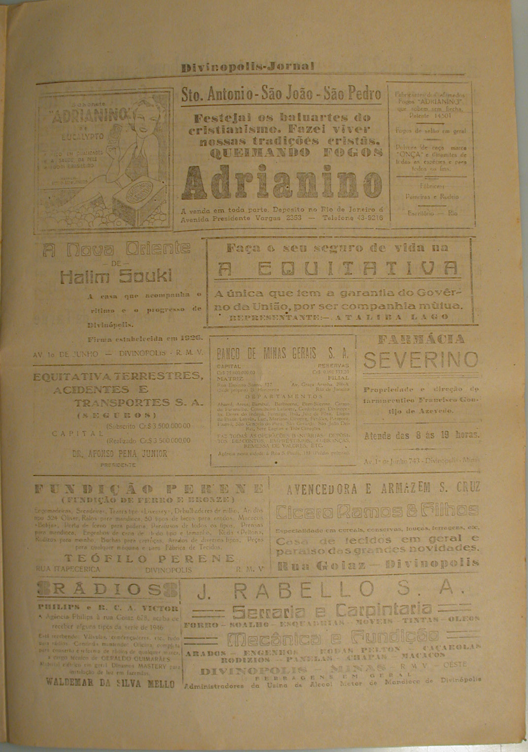 Divinópolis jornal, contém artigos, reportagens, informações, notícias e propagandas diversas.