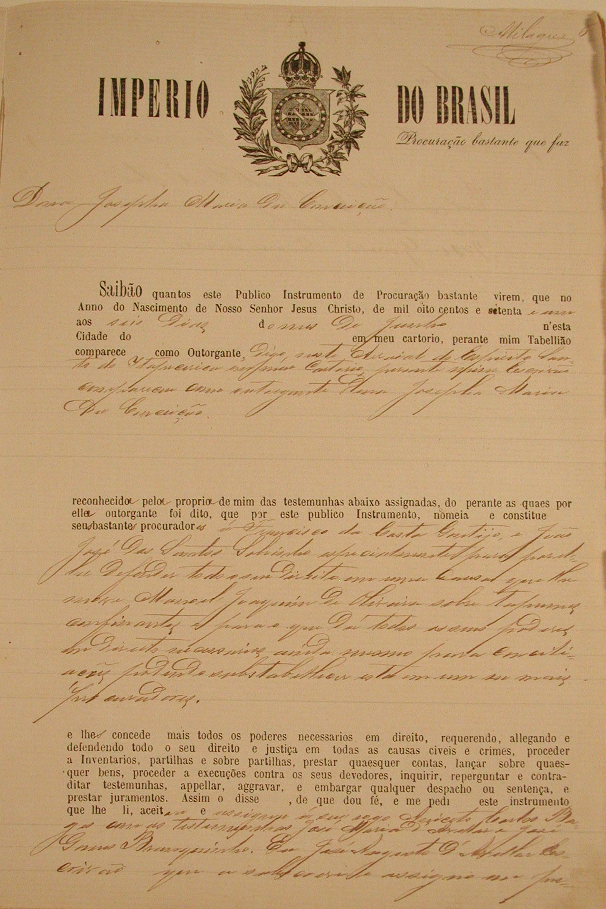 JOSEFA MARIA DA CONCEIÇÃO, NOMEANDO COMO SEUS PROCURADORES FRANCISCO DA COSTA GONTIJO E JOÃO DOS SANTOS SOBRINHO PARA DEFENDER TODO O SEU DIREITO EM UMA CAUSA QUE LHE MOVE MANOEL JOAQUIM DE OLIVEIRA.