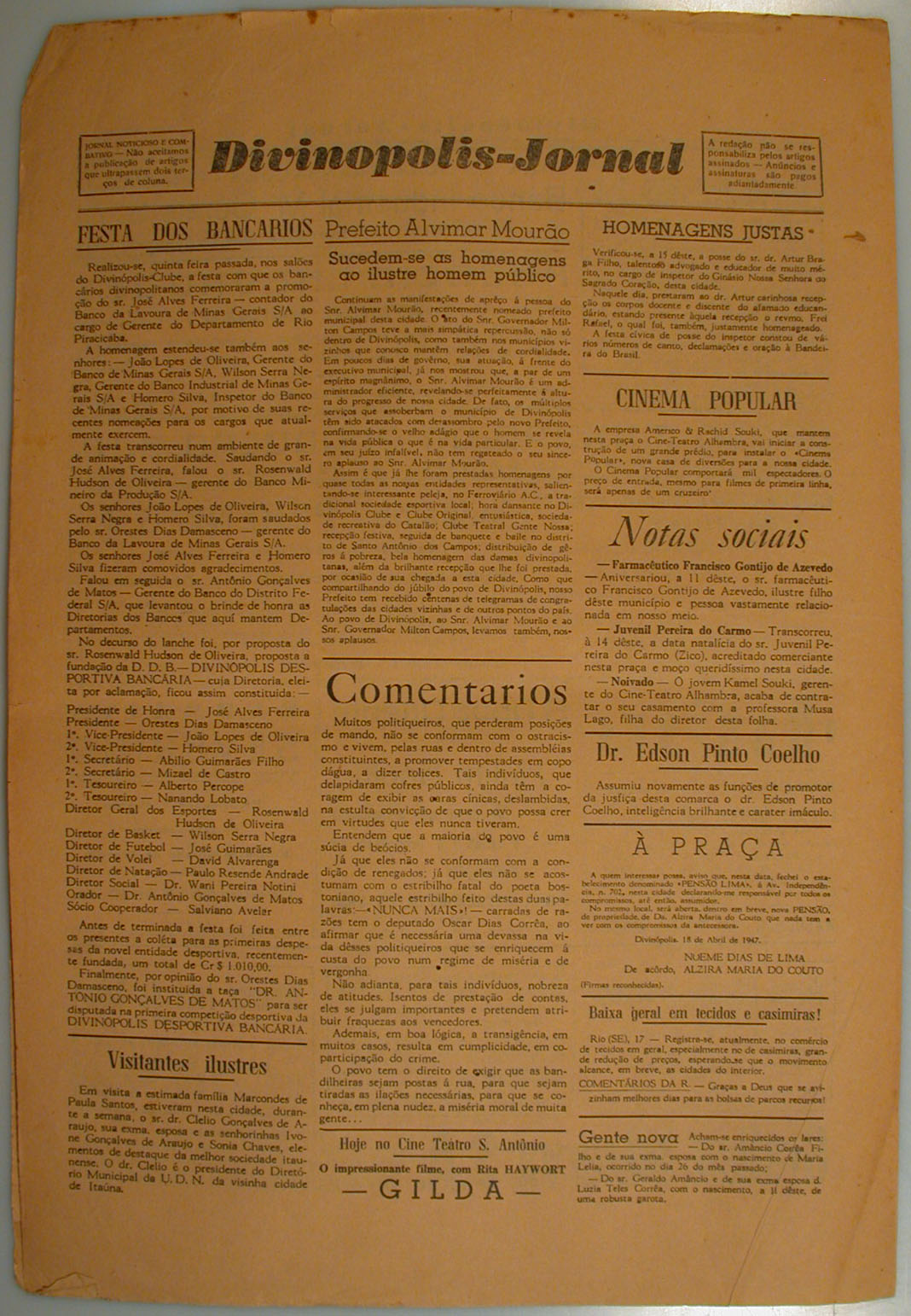 Quarta página do Divinópolis Jornal, ano 10, número 212. Divinópolis, 20/04/1947.