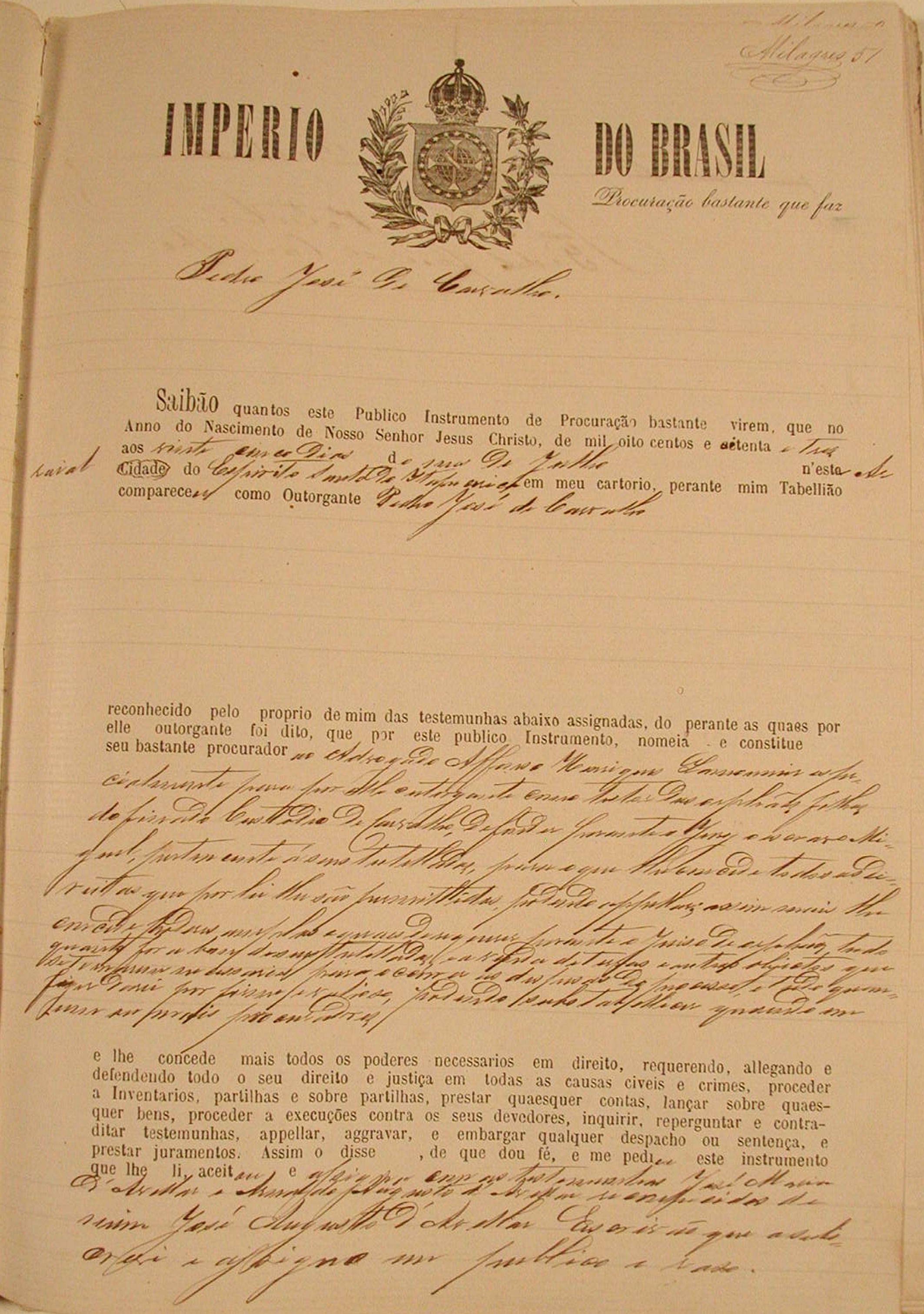 Escrivão - arraial - Espírito Santo do Itapecerica - Livro de Procurações do Arraial