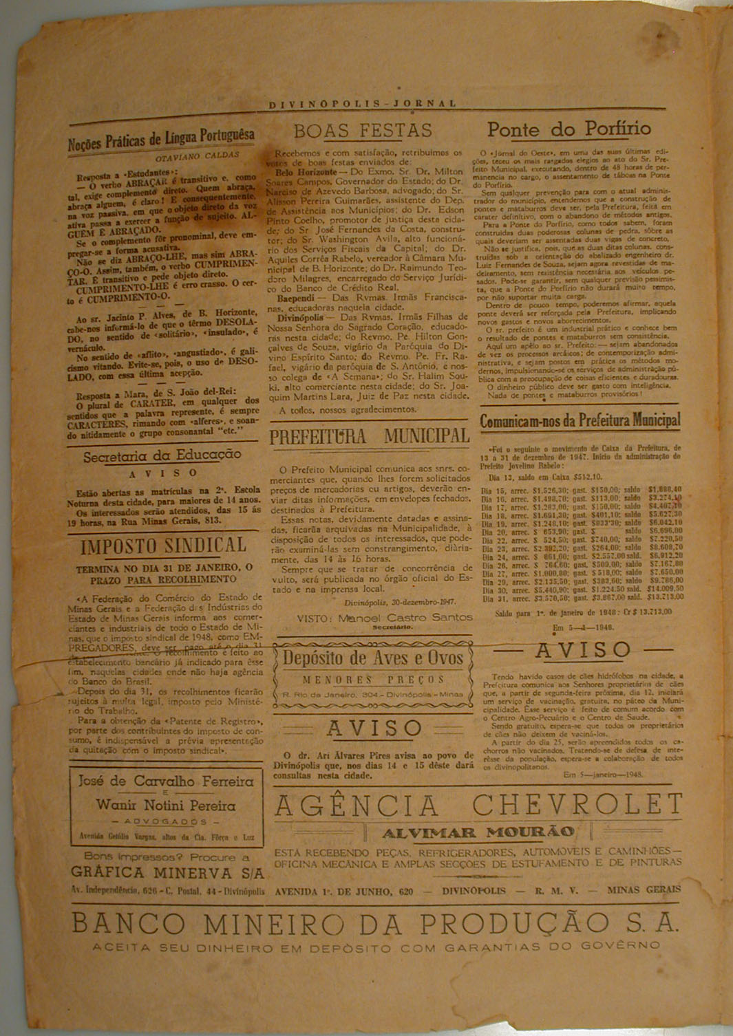 Segunda página do Jornal Divinópolis, ano 11, número 241. Divinópolis, 11/01/1948.