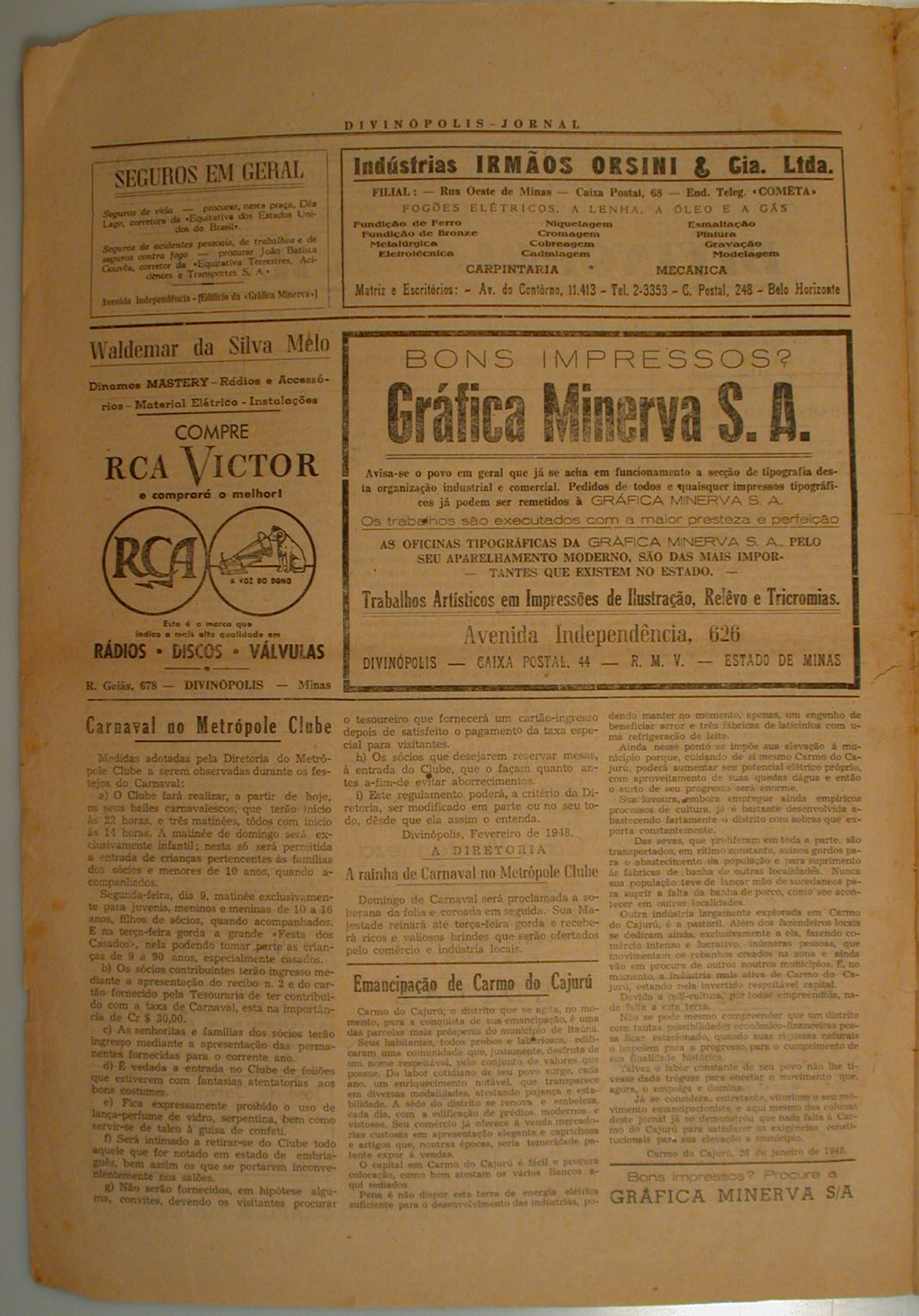 Divinópolis Jornal, contém artigos, reportagens, informações, notícias e propagandas diversas.