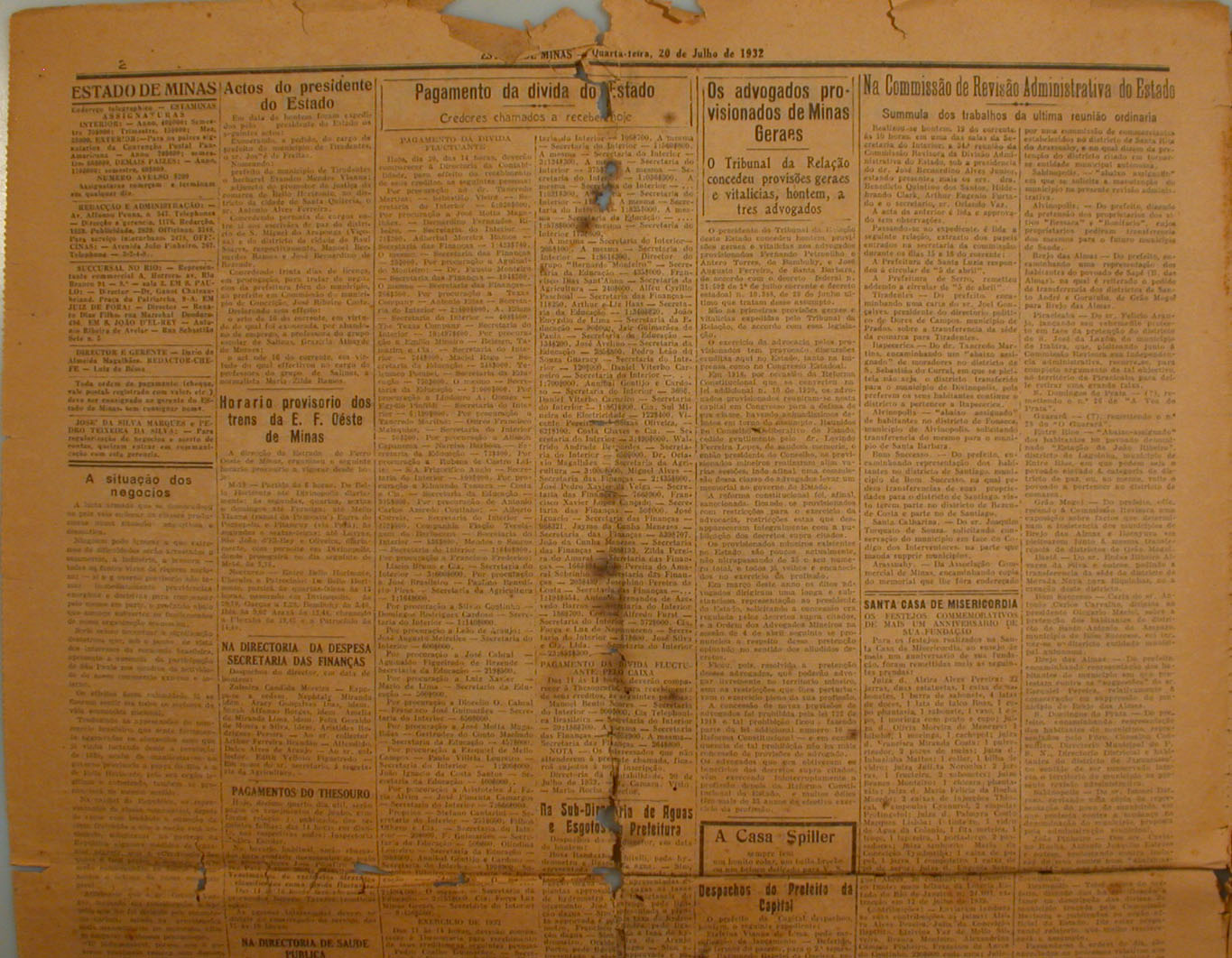 Terceira página do jornal Estado de Minas, ano 5, Belo Horizonte, 20/07/1932.