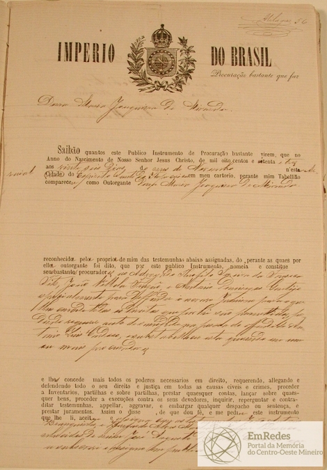 DONA MARIA JOAQUINA DE MIRANDA, NOMEANDO COMO SEUS PROCURADORES O ADVOGADO THEÓFILO TEIXEIRA DA FONSECA TITO, JOÃO VILELA FRAZÃO E ANTÔNIO DOMINGOS GONTIJO ESPECIALMENTE PARA DEFENDER O ESCRAVO JERÔNIMO POR TER OFENDIDO ANTONIO LUIS CARDOSO.