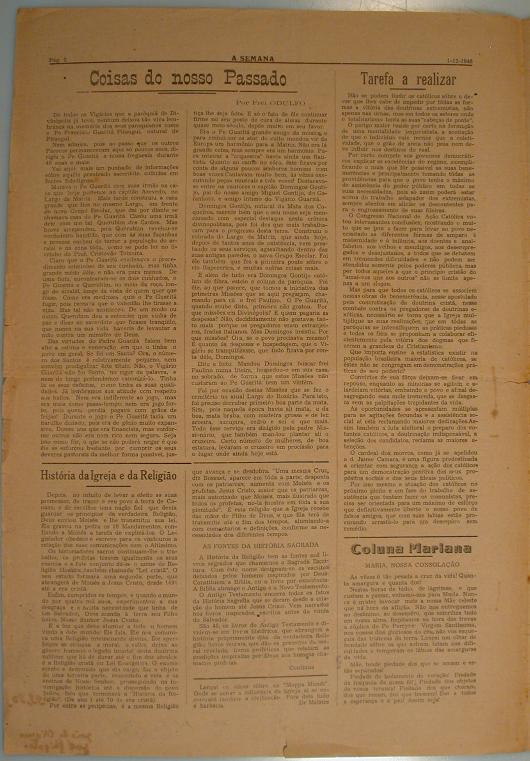 JORNAL A SEMANA: NOTÍCIAS, REPORTAGENS, ARTIGOS RELIGIOSOS E HISTÓRICOS - HISTÓRIA DA CIDADE DE DIVINÓPOLIS E O CONTEXTO MUNDIAL - INFORMAÇÕES GERAIS, PROPAGANDAS. PRIMEIRA PÁGINA: "BOMBAS DA RAF: "OS MAÇONS NA BERLINDA II" - PÁGINA 2: "COISAS DO NOSSO PASSADO" - "HISTÓRIA DA IGREJA E DA RELIGIÃO" - "TAREFA A REALIZAR" - PÁGINA 4:"CAMPO DE ESPORTES" - CINEMA E TEATRO E OUTROS ARTIGOS.