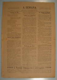 JORNAL A SEMANA: NOTÍCIAS, REPORTAGENS, ARTIGOS RELIGIOSOS E HISTÓRICOS - HISTÓRIA DA CIDADE DE DIVINÓPOLIS E O CONTEXTO MUNDIAL - INFORMAÇÕES GERAIS, PROPAGANDAS. PRIMEIRA PÁGINA: "BOMBAS DA RAF: "OS MAÇONS NA BERLINDA II" - PÁGINA 2: "COISAS DO NOSSO PASSADO" - "HISTÓRIA DA IGREJA E DA RELIGIÃO" - "TAREFA A REALIZAR" - PÁGINA 4:"CAMPO DE ESPORTES" - CINEMA E TEATRO E OUTROS ARTIGOS.