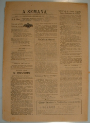 JORNAL A SEMANA: NOTÍCIAS, REPORTAGENS, ARTIGOS RELIGIOSOS E HISTÓRICOS - HISTÓRIA DA CIDADE DE DIVINÓPOLIS E O CONTEXTO MUNDIAL - INFORMAÇÕES GERAIS, PROPAGANDAS. PRIMEIRA PÁGINA: "BOMBAS DA RAF: UMA CARTA Á DONA TECA BEATA" - PÁGINA 2: "NOS DOMINGOS E FESTAS DE PRECEITO - OUVIR MISSA INTEIRA" - "CÍRCULO OPERÁRIO DE DIVINÓPOLIS" - "HISTÓRIA DA IGREJA E DA RELIGIÃO" - PÁGINA 4: "FESTAS DO DIVINO ESPÍRITO SANTO, PADROEIRO DA CIDADE" - "A CRISE MORAL" - CINEMA E TEATRO E OUTROS ARTIGOS.