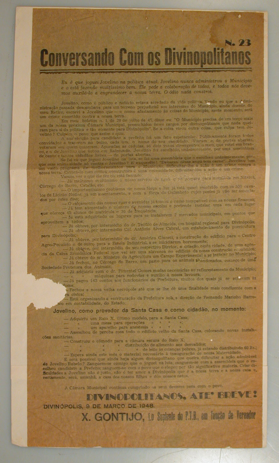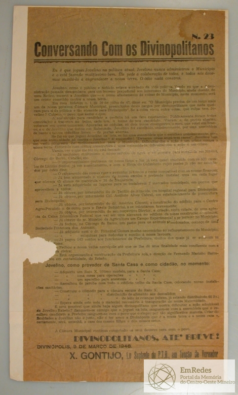 BOLETIM: CONVERSANDO COM OS DIVINOPOLITANOS DE PEDRO X. GONTIJO - ASSUNTO: EU É QUE JOGUEI JOVELINO NA POLÍTICA ATUAL.