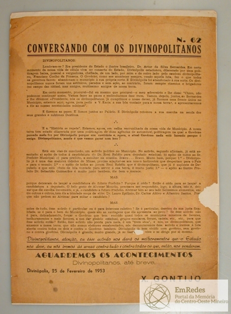 BOLETIM: CONVERSANDO COM OS DIVINOPOLITANOS DE PEDRO X. GONTIJO - ASSUNTO: EU DISSE NO MEU BOLETIM Nº 60: NO GINÁSIO NOSSA SENHORA DO SAGRADO CORAÇÃO, O ALUNO TEM SIMPLES PAPEL PASSIVO E O QUE PREDOMINA ALI É O PSIFACISMO. ESTA FOI A MINHA ACUSÇÃO AO GINÁSIO, NÃO HAVENDO AQUI NENHUMA OFENSA, COMOSE VÊ.