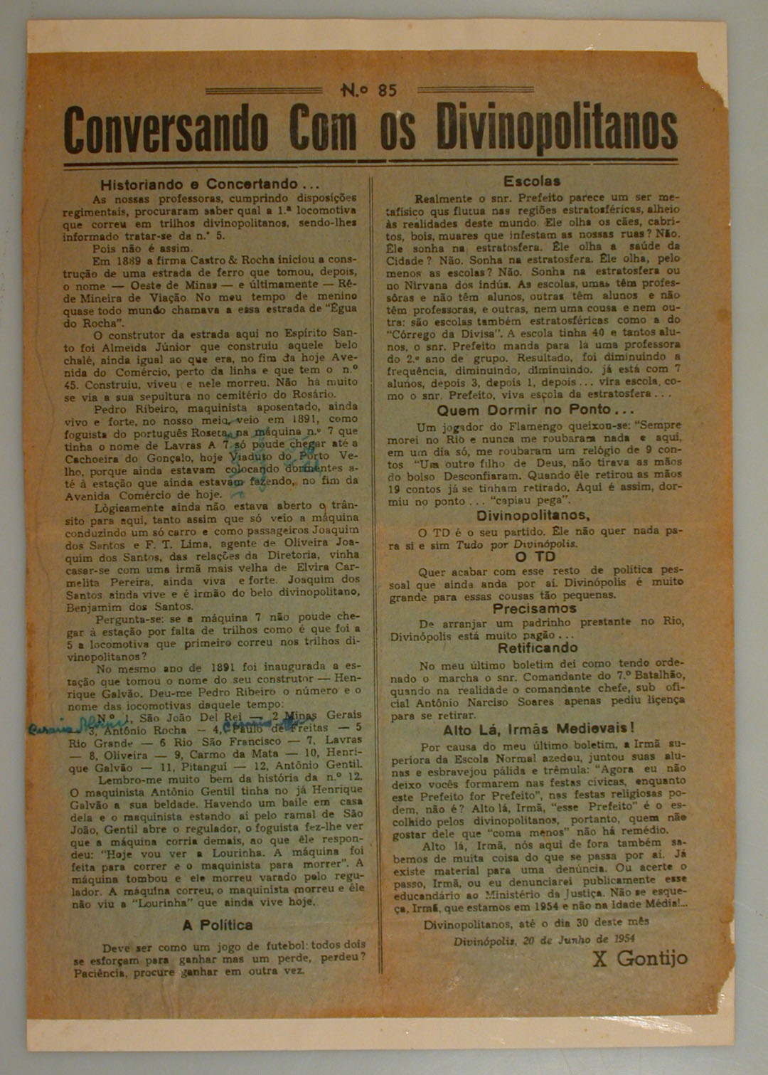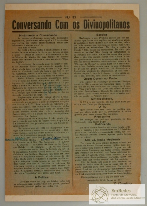 BOLETIM: CONVERSANDO COM OS DIVINOPOLITANOS DE PEDRO X. GONTIJO - ASSUNTO: HISTORIANDO E CONCERTANDO...
